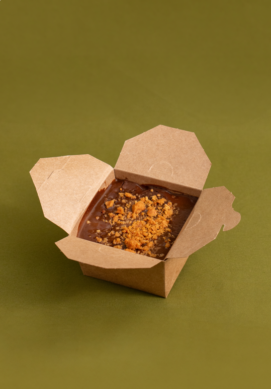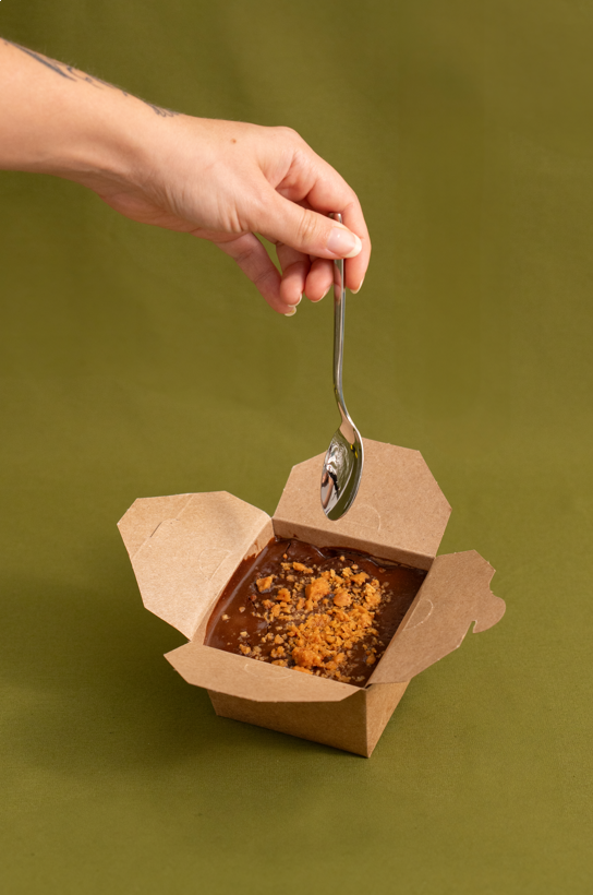 Delicioso pavê de paçoca com chocolate feito com camadas de creme de amendoim caseiro, cumaru e enriquecido com biomassa de banana verde, paçoquita, bolacha de maisena e ganache de chocolate fino 70% cacau.
