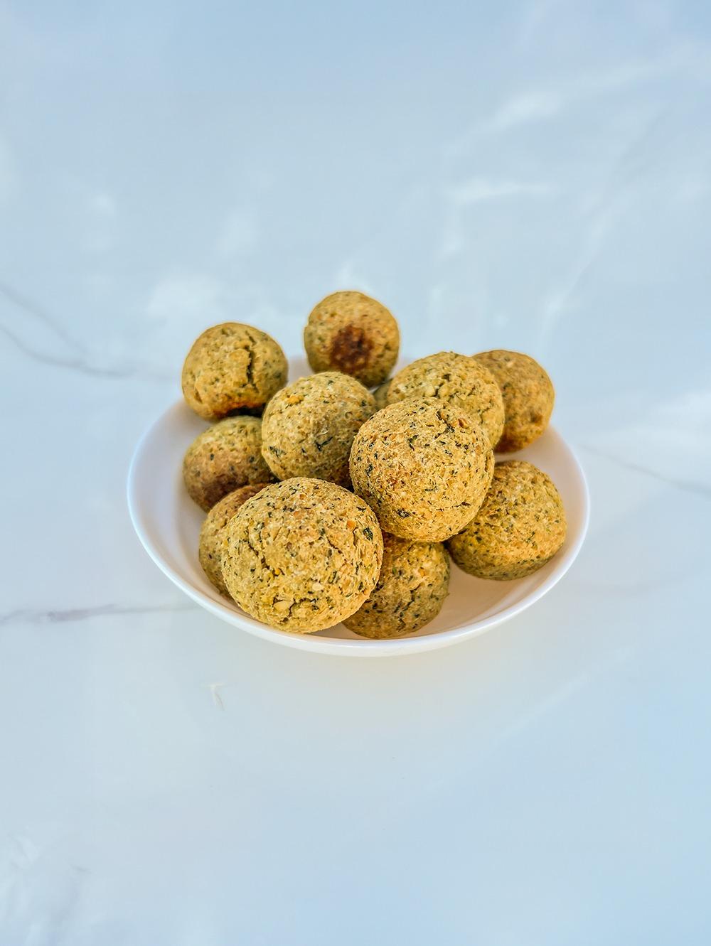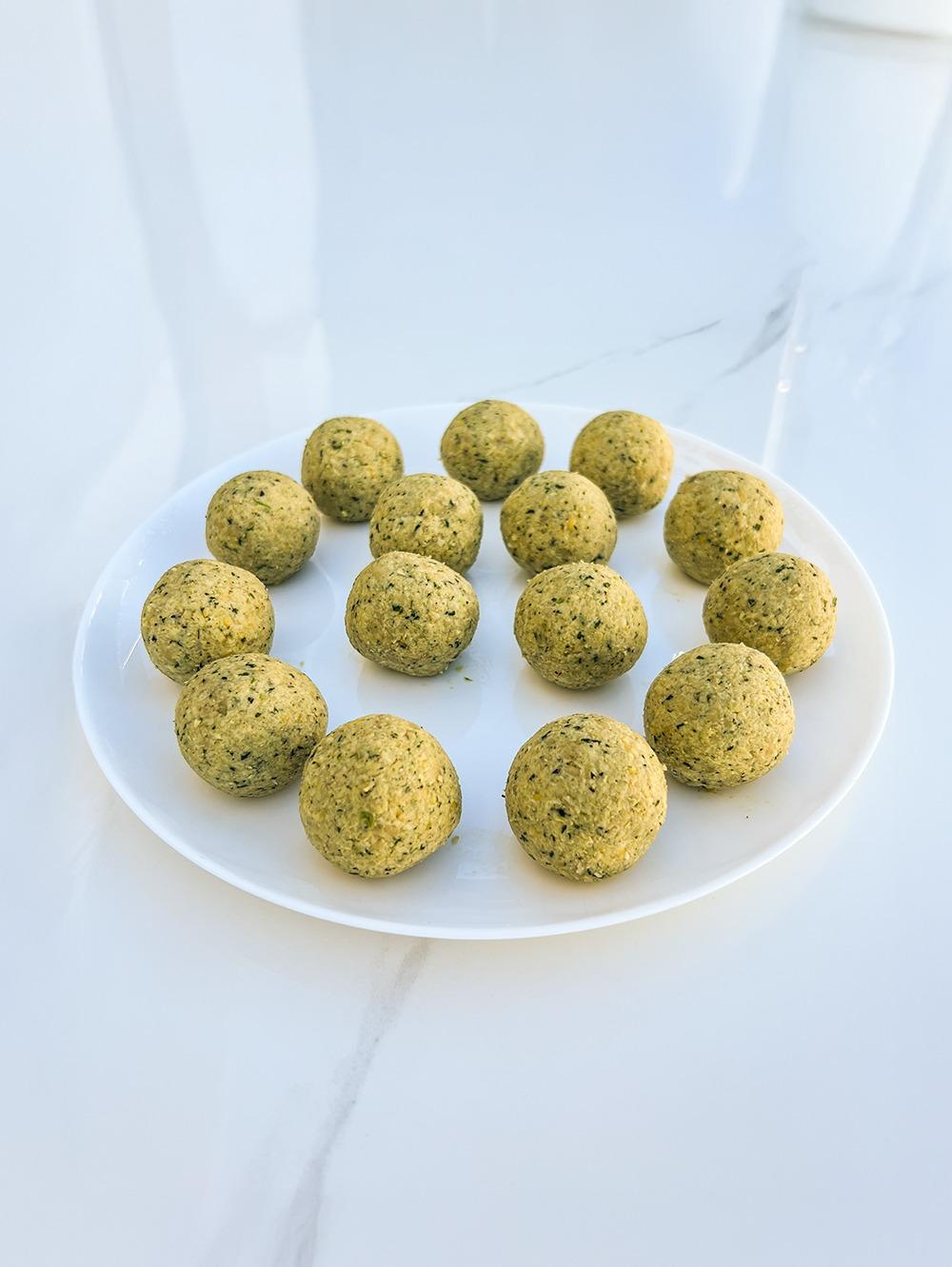 Porção de falafel (bolinho árabe de grão de bico) para fritar ou assar em casa - também pode ser feito na air fryer.