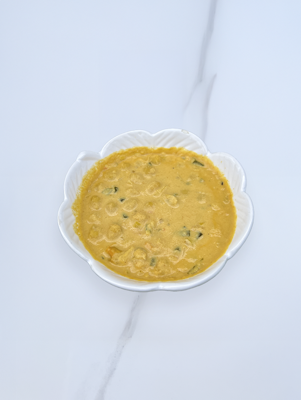 Grão de bico al dente feito no leite de amendoim caseiro com alho poró, cebola roxa, tomatinho cereja e vinho branco.